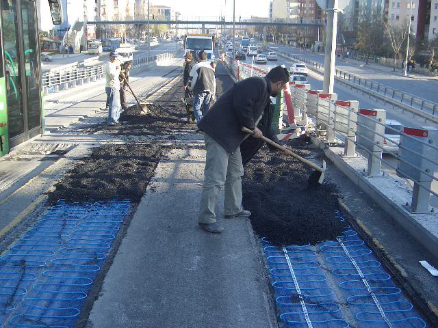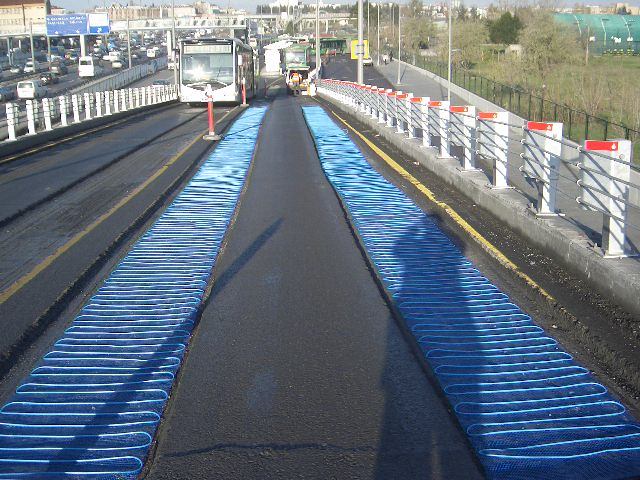 İstanbul’un çevre yollarında çok büyük yolcu taşıma potansiyeline sahip Metrobus projesinin Avcılar’da yolun iki tarafında yer alan rampalarda kar ve buz eritme sistemi olarak Nexans çözümü kullanıldı. Özellikle soğuk iklimiyle bilinen Avcılar’da toplu taşıma araçlarının güvenliğini sağlamak üzere planlanan sistemde kablolar direk asfalt altına uygulanmıştır. Seçilen kablolar alüminyum zırhlı ürünler olup mekanik dayanımları çok yüksektir. Uygulama 80 cm eninde tekerlek izleri olarak yapılmıştır. Kar ve buz oluşumunu takip edebilen ıslaklık sensörü kullanılmış ve sistemin sadece kar veya buz oluşumu gerçekleştiği anda otomatik devreye girmesi sağlanmıştır.